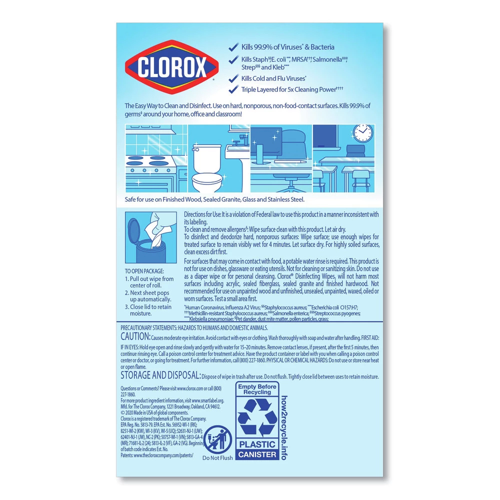 - Clean and disinfect multi surfaces in one easy step. These sanitizing wipes power through grease, soap scum and grime and kill germs that can live on surfaces for up to 48 hours. Each cleaning wipe can effectively kill common bacteria, including Staph, Salmonella, Strep, MRSA, E. coli and the cold and flu viruses, in as little as 30 seconds. They also remove allergens like car and dog dander, dust mite debris, and pollen. These antibacterial wipes are easy to use and work great on a variety of hard, nonporous surfaces, including finished hardwood, stainless steel, mirrors and glass. Ideal for use in schools, restaurants, offices and other commercial facilities.