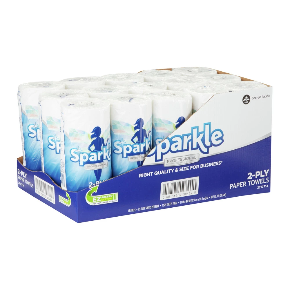 - (85-Pc./Roll, 15 Rolls/carton) Sparkle Professional Series 2-Ply 8.8 in. x 11 in. Perf Kitchen Paper Towels – White – 2717714